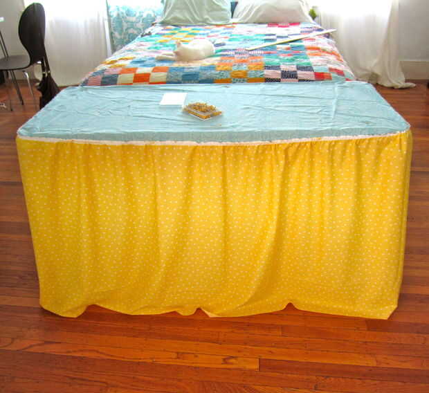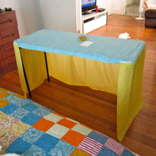 Entonces, liberar la falda de la mesa, porque tenemos algunos dobladillos para hacer!