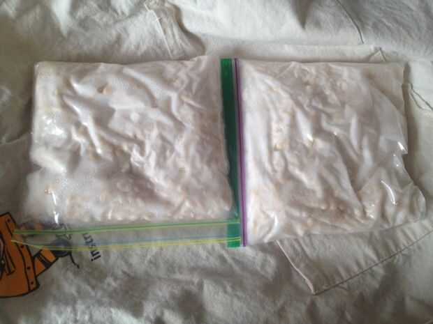 En la foto, para mi Arvejas verdes, la foto fue tomada antes de tempeh fue totalmente fermentado (36 H); todavía era la fermentación, estaba apenas impaciente tomar un complemento :)
