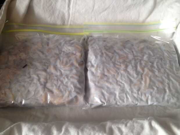Después de 22 H, cuando es un éxito, tienes torta de frijoles, firme con esporas blancas en todas partes.