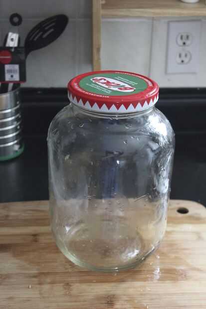 Cubra el frasco con un trozo de tela con una banda elástica alrededor del borde. Esto permite que el aire fluya dentro y fuera, pero guarda cosas como el polvo y bichos. Solo usé mi tapa porque de todos modos no sellar correctamente.