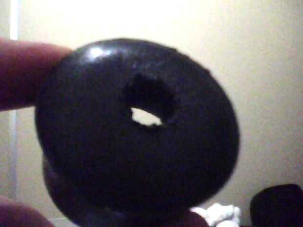 Ahora hacer una marca con lo que tienes a mano. En mi caso hice una marca para el 'taladro' no slip, así perforé con un destornillador (ese pobre!) girando el destornillador para 'comer' goma en vez de complemento. El agujero debe ser del tamaño que se adapta la manguera pegada en él, nada menos o mucho más.