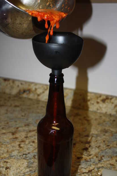 Recomiendo usar una botella de 12 onzas o 22 onzas higienizada con un tapón no. 2 perforados (tapón) y un bloqueo de aire. Esto permite escapar mientras que la fermentación ocurre evitando también cualquier cosa entren el gas. No reutilice este tapón y bolsa de aire en cualquier cosa menos fermentación de ácido láctico. Usted puede usar un tarro de masón, pero usted tendrá que abrir regularmente la parte superior para permitir que escape el gas.