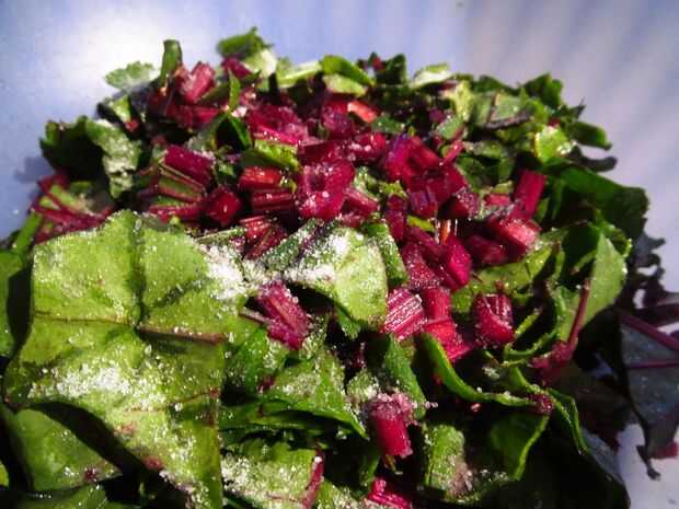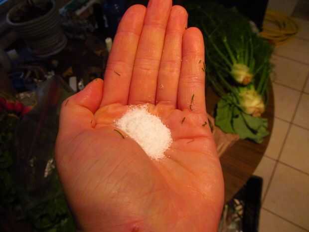 Después de haber picado un montón y añade al bol, espolvoree con una capa de sal.