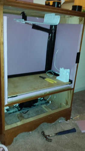 Mi prueba de funcionamiento produciendo cierto éxito prometedor pero me di cuenta de que aumentar el tamaño de la cámara estaba haciendo el trabajo del compresor extremadamente duro. Yo sabía que necesitaba encontrar una manera de enfriar el compresor abajo mejor de lo que se hacía por el intercambiador de calor. Pude superar esto mediante la adición de un ventilador de PC de gran alcance de y la vieja PC tenía por ahí que se enciende cuando la unidad estaba en modo de enfriamiento. Una vez que añadí el ventilador de la PC que sopla sobre el compresor noté una disminución inmediata en el tiempo de enfriamiento. También era capaz de mantener la temperatura ambiente por unas horas sin la unidad está encendida. Cualquier cervecero casero sabe lleva una buena cantidad de tiempo para que el mosto se enfríe durante la fermentación primaria pero una vez que el mosto se enfría lo lleva muy poca energía para el compresor mantenerlo fresco.