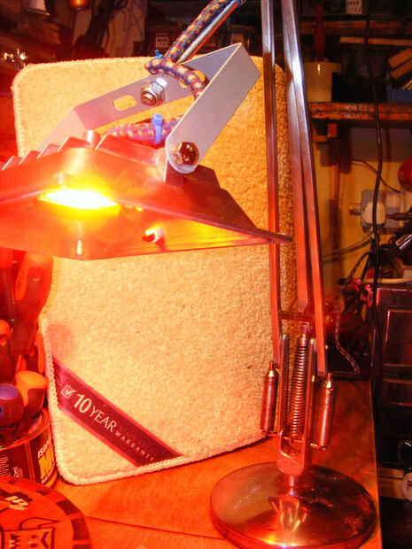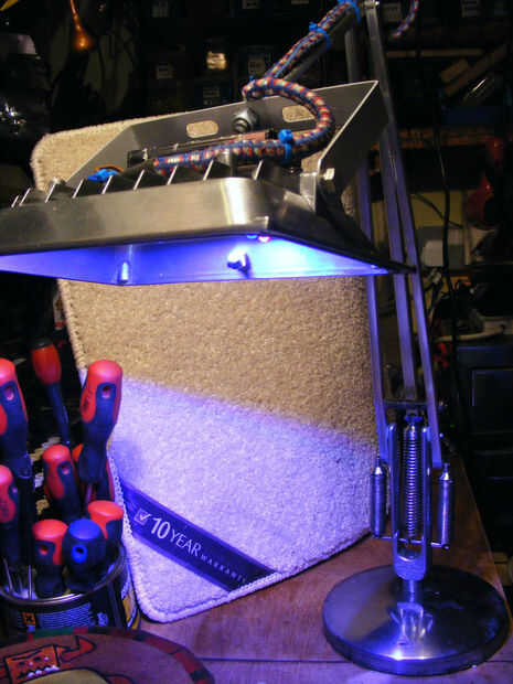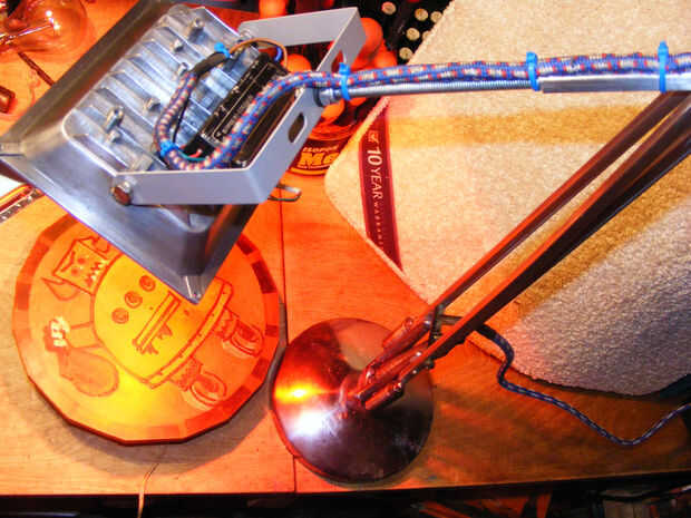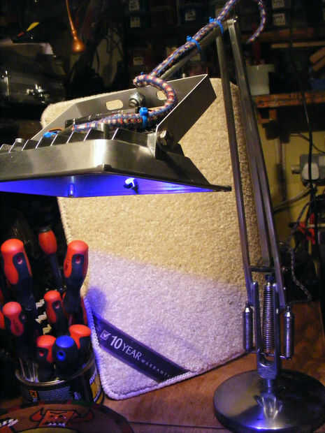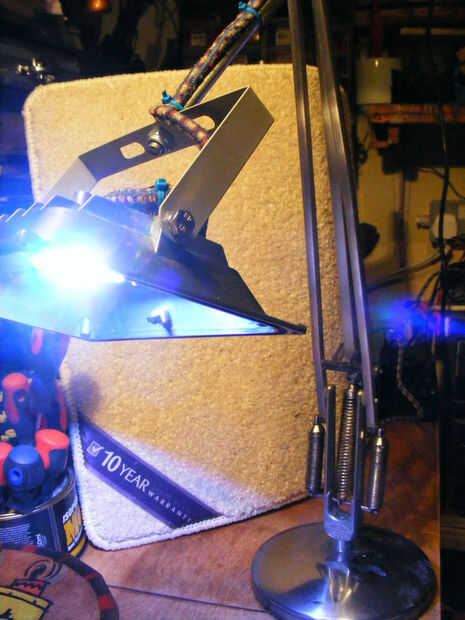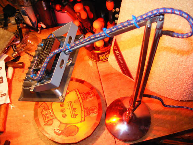 MeGa BRiGht bajo consumo multicolor luz de trabajo, con funciones de luz estroboscópica y diseño punk retro futuro. Electricidad y espectáculos son caros, no son leds rgb, la base de la lámpara era una reliquia de arte deco/utilitario hermoso de mis días de uni, su cabeza fue cortada y utilizado como una tolva pintura para un proyecto de arte especial en 1999, reduciendo significativamente su valor de ebay hoy. el siguiente vídeo demuestra su ferocidad, las luchas de cámara para mantenerse al día.