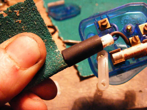 encogimiento del calor hace que los extremos suaves ordenado. recortar grandes suaves piezas con tijeras, empuje la trenza con el shrink, si utilizar llama para calentar el encogimiento, proteja la trenza con algo, he usado papel de lija.