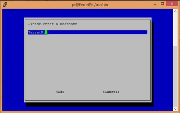 -Opción A2 cambia su nombre de host. Es una buena idea hacer esto desde el principio, y elegí "FerretPi"