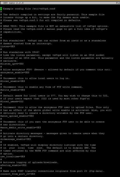 -Tenemos que editar un archivo de configuración para obtener el balanceo, así que escriba "nano /etc/vsftpd.conf" y presiona enter otra vez.