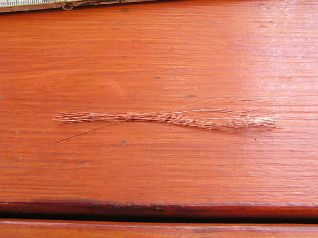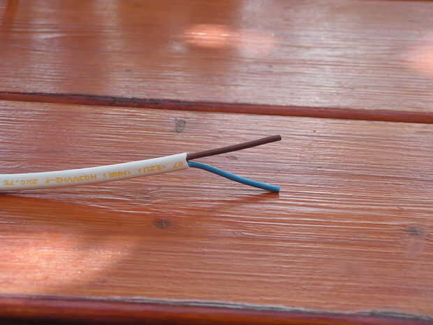 Empezamos con un trozo de cable eléctrico. Esto se corta en trozos de 10 cm. Y entonces.