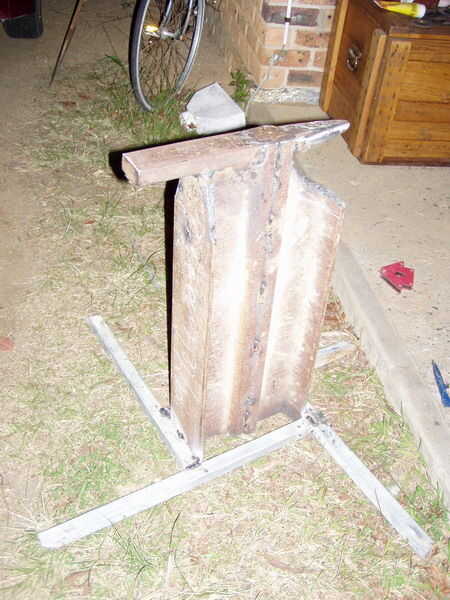 Me decidd para ir con la opción más pesada. No hay fotos de la construcción por desgracia. Las partes fueron cortadas utilizando un soplete de oxígeno/acetileno y parcialmente terminadas con una amoladora. La soldadura fue hecha con un soldador MIG. Mi futuro tiene bastantes más horas con una amoladora.