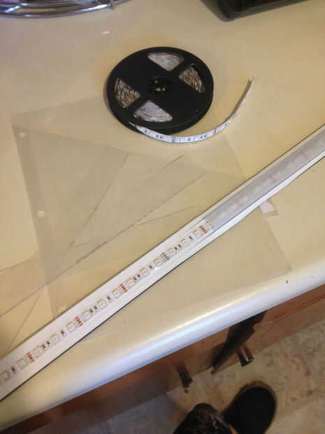 1. se reunieron algunos tira de luz RGB, un trozo de coroplast y un par de organizadores claros para una carpeta.