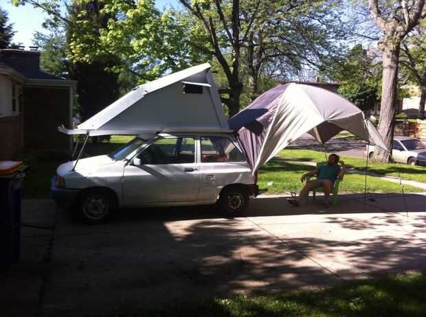 1. hacer su propia tienda o encontrar uno. Mucha suerte y me recogió varios postes de la carpa y lluvia vuela después de un festival de música. Esto me permitió experimentar con unas pocas piezas diferentes de la tienda hasta que encontré un sistema que trabajó.