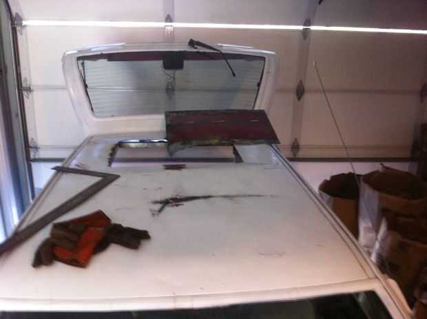 1. sacar el vinilo en el interior del techo del coche. Su mucho más fácil averiguar dónde cortar el agujero cuando usted puede ver donde la Cruz bares ya están.