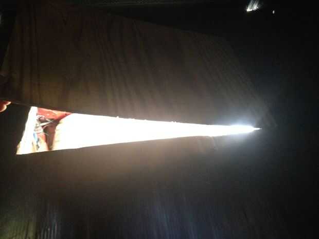 2. Busque en el agujero que se corta en el techo y hacer una línea a medio camino a través de él. Corte en la línea para crear dos aletas.