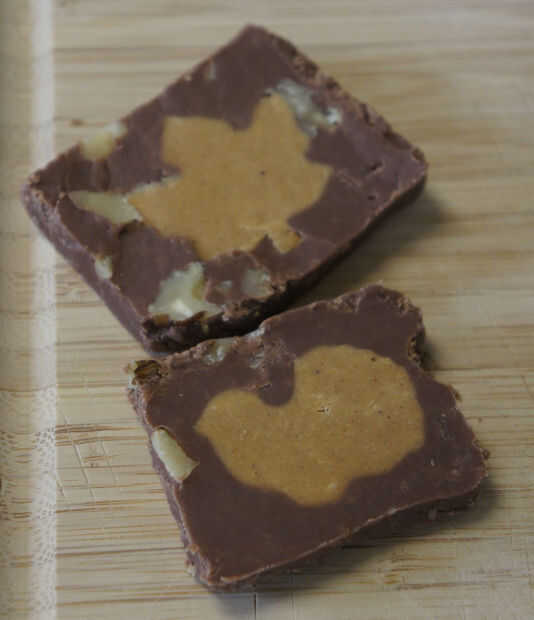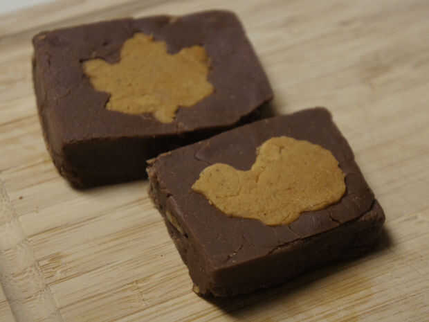 Usted notará que las formas de fudge no siempre se alinean con la parte superior de la Plaza de fudge. Para tener una mirada más limpia, corte los cuadrados de chocolate en medio. Ahora todo se ve aún mejor!