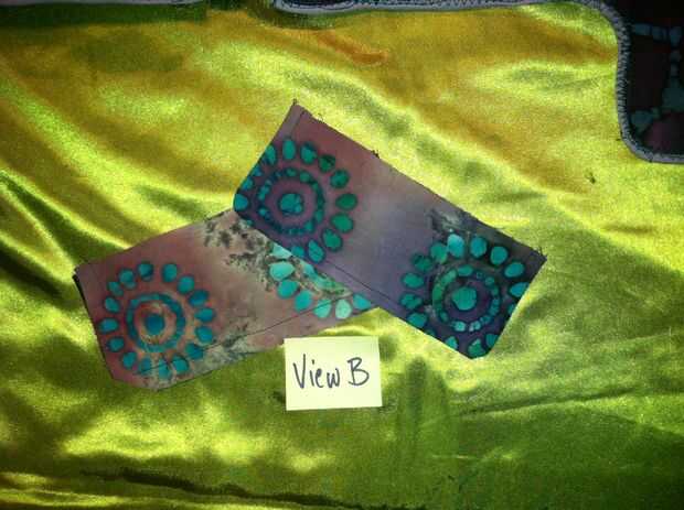 a diferencia de las otras piezas nos hemos ocupado hasta ahora, las aletas del bolsillo se construyen para ser dado vuelta adentro hacia fuera, con margen de costura de 1/2".  Coser la tela de la cáscara de algodón para pato de tela, costura alrededor de tres lados (vista A).  Gire la aleta del bolsillo de adentro hacia fuera y encima coser a lo largo de tres lados (vista B).  Repita para segunda aleta del bolsillo.