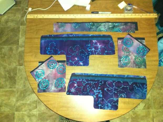 Cortar cuatro piezas de la base de la correa de la tela de la cáscara de algodón, dos para cada lado, capas externas e internas.