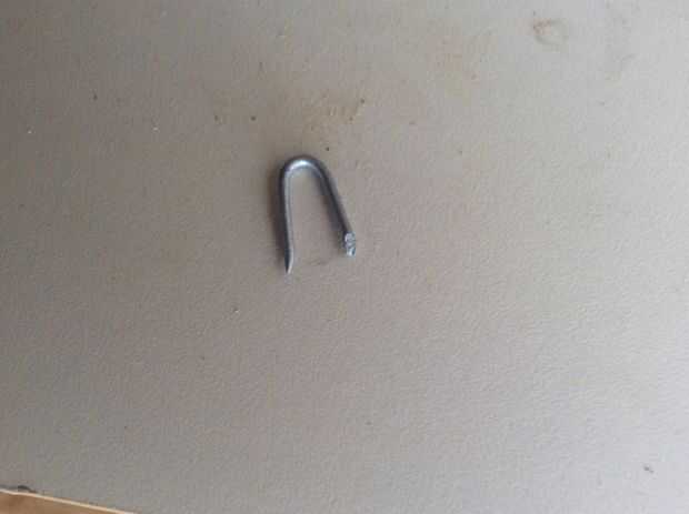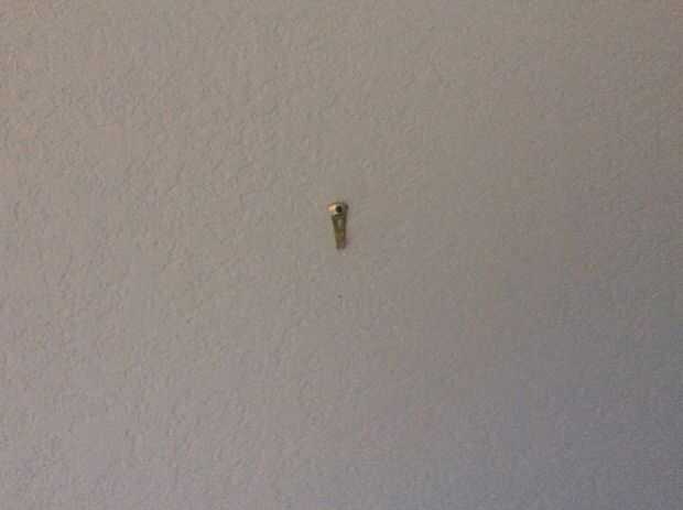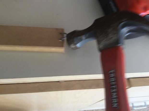 Una vez que se inserta el gancho, martillo en para asegurarse de que tiene un agarre firme como se ve en la foto ocho