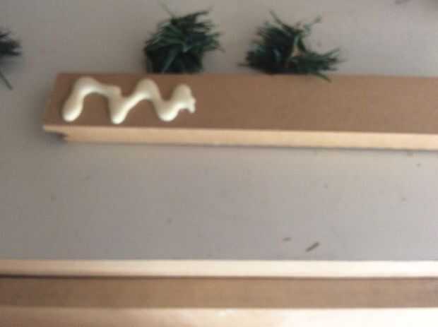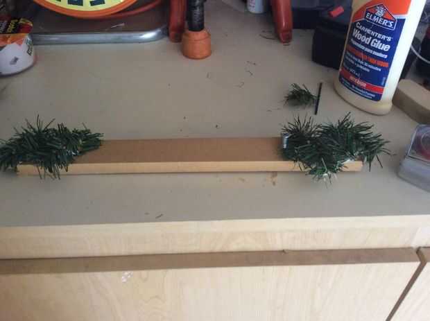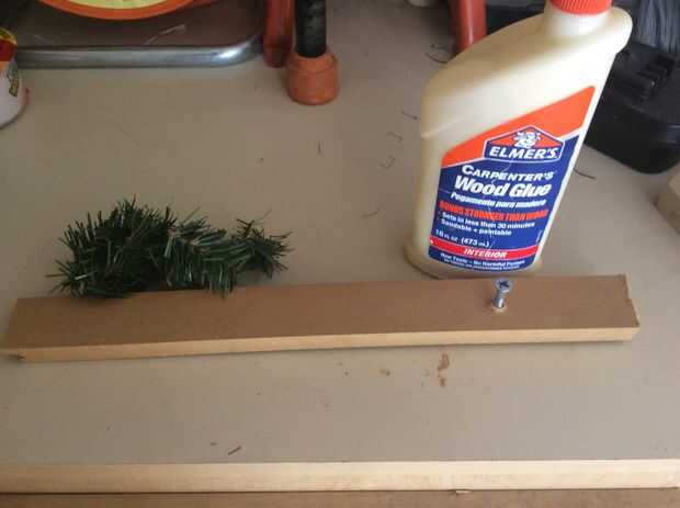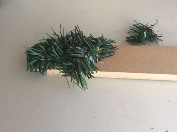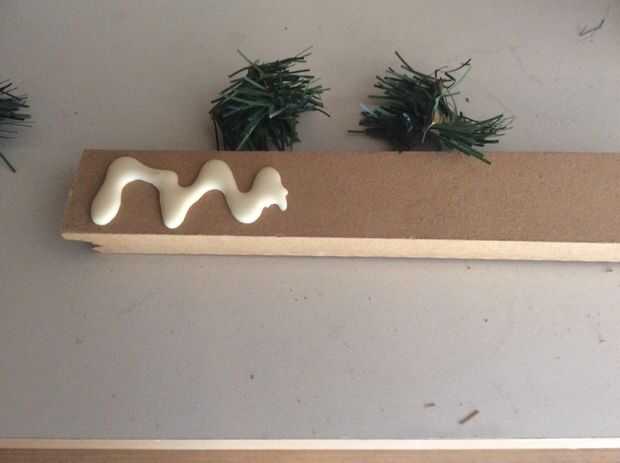 Pegar las hojas en la parte superior e inferior de la pieza de madera
