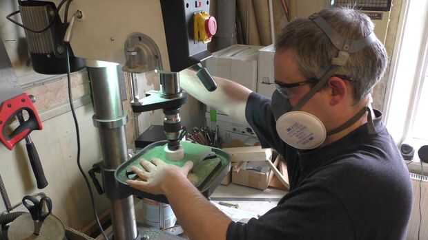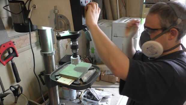 Encajar un serrucho de 57 m m en el taladro de columna y un taladro. Si no la pieza de la abrazadera hacia abajo y déjelo vibrar obtendrás un agujero de 58mm que coincidirá perfectamente con la manguera de Festool.