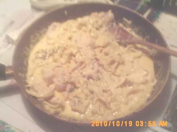 Mayoría de los italianos a utilizar lo que es en mano. y no siempre lo que dice alguna receta que lo principal es el mismo tipo de ingredientes puede ser utilizado. Nos va ser sustituyendo un poco aquí también. Por último, es una costumbre "Americana" a utilizar crema de leche para que alfredo, no realmente tan grande un acuerdo. Además de crema de leche es demasiado maldito caro y no tengo una vaca en el patio trasero.