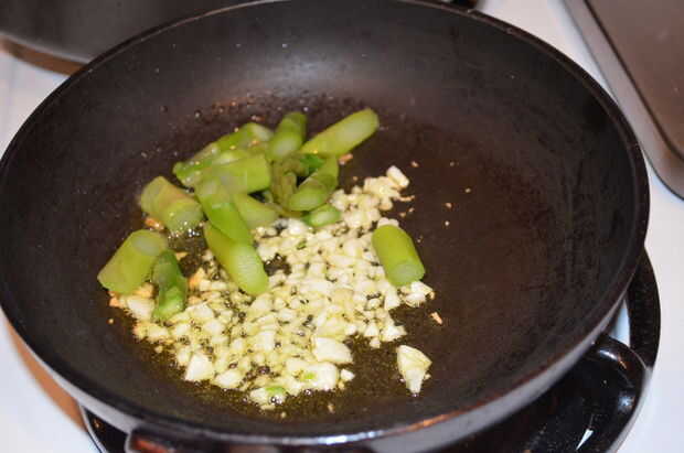 Primero se comienza a llenar dos olla mediana con agua, llevar a ebullición, para el fetuccini y el espárrago, reducir un poco el fuego a fuego lento. Sancoche los espárragos durante exactamente 2 minutos. Vacíe el agua caliente de la pasta y ahorrar 1/4 ml y los tenemos aparte. Mientras los espárragos estén calientes y el fetuccini esté cocido en una sartén echar el espárrago y el ajo con el aceite de oliva, queso parmesano, jugo de limón, pimienta al gusto de sal y. Cubadisco durante 2 minutos.
