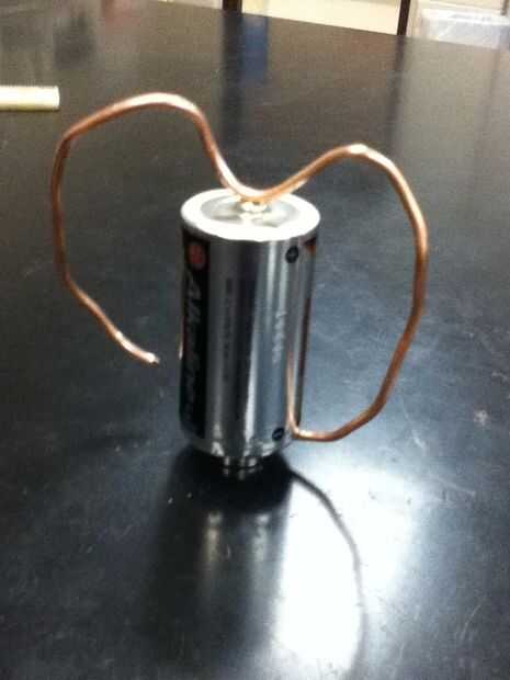 Ajuste el cable por lo que parece un poco un corazón. El cable debe ir todo el camino alrededor y tocar los imanes a ambos lados. Doblar el alambre ligeramente como se muestra en la imagen.