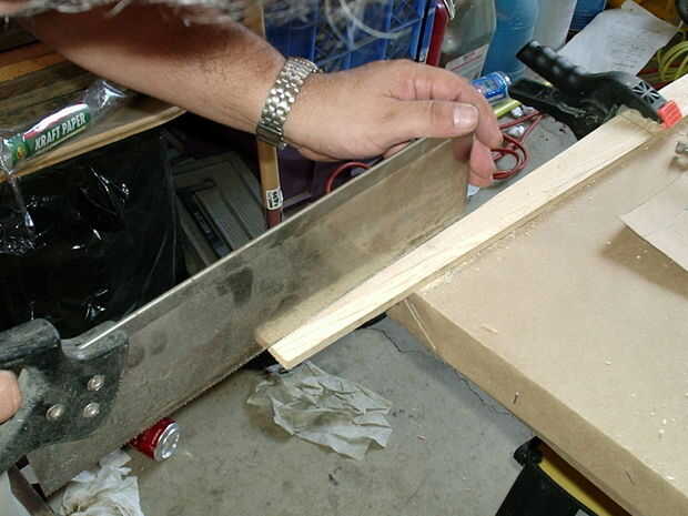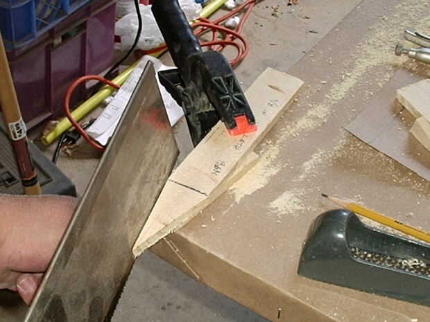 Una vez que termines con eso, arena hacia abajo un poco. Tomar una de las piezas pequeñas y hacerlos a un punto desde donde desea que la inclinación hacia abajo en una hoja (echar un vistazo a los planes si lo está haciendo a escala). Después de dibujar que en corta con la sierra y arena.