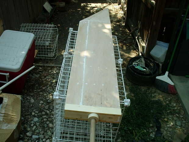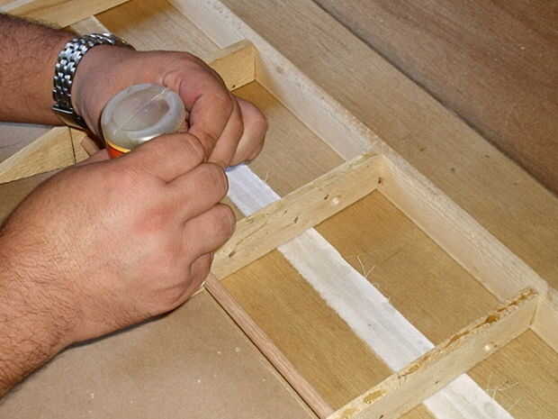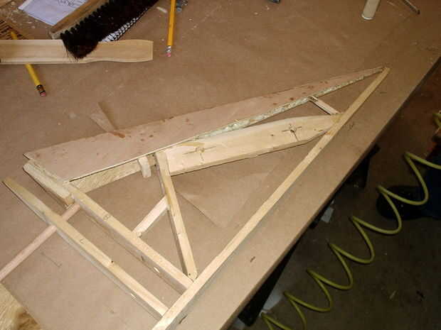 Ahora tenemos que preparar los trozos de madera grandes capas para obtener en el marco. Lije los bordes y luego tomar la tela y pegamento blanco. Cómo debe ser y entonces diluir pegamento blanco un poco y la tela en se alinean los dos pedazos más grandes de madera. Ponlo entre las dos piezas de la madera para que conecte. Mientras que todavía ha mojado (Asegúrese de que se queda aunque) poner pegamento en los soportes, la espalda y ese gran pedazo de madera así que usted puede poner los pedazos grandes de la madera contrachapada. Después lo pones en el clavo en su lugar con la pistola de clavos. Dan la vuelta y hacer lo mismo al otro lado. Ahora tome su relleno de madera y llenar todos los huecos donde poner uñas, llenar todas las partes poco que necesitas y también puedes poner algunos en la espada para hacer la transición entre las dos piezas de madera contrachapada de cuidar un poco mejores (la pintura por supuesto). Ahora debe colocar las últimas piezas medianas en los extremos al igual que los demás, debe tener una forma de espada buster agradable que parece (y es) casi listo.
