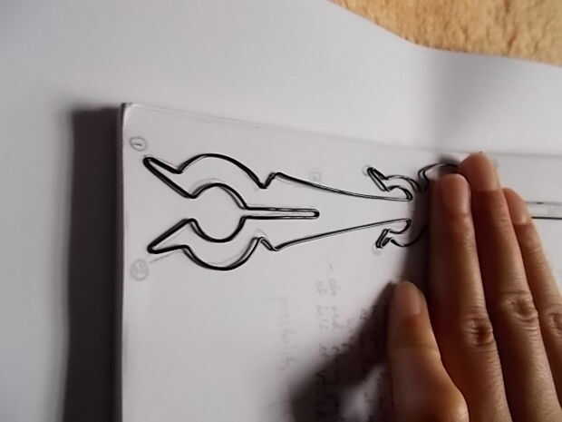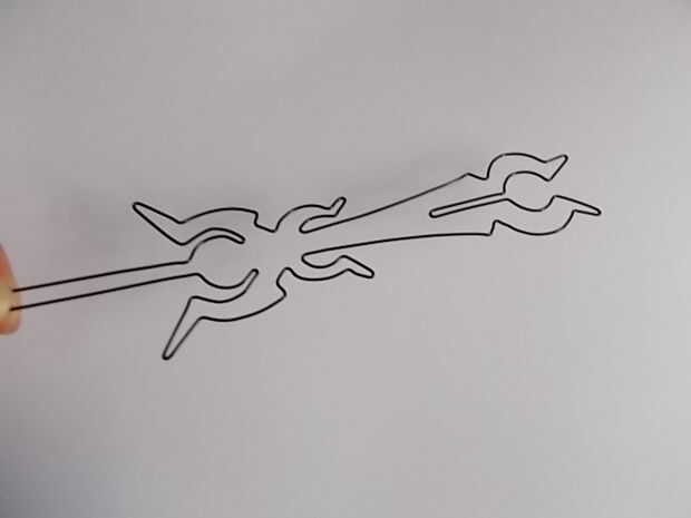 Luego tome el alambre más grueso y doble para caber la forma de Masamune. Este será el marco para tejer. No corte el cable todavía; facilitará las cosas.