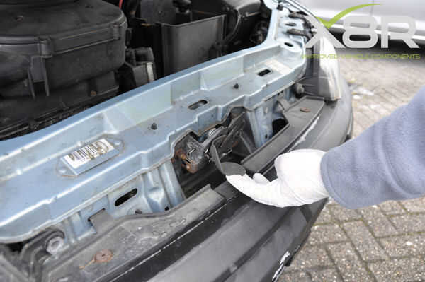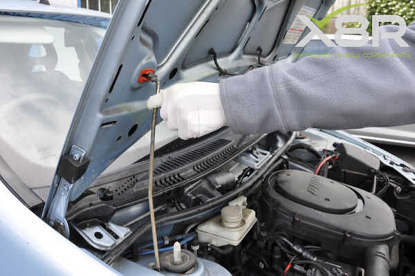 Abrir el capó; el capo (tirar de la palanca roja) es en pies de lado (SO) del conductor.