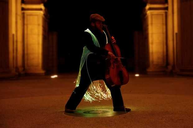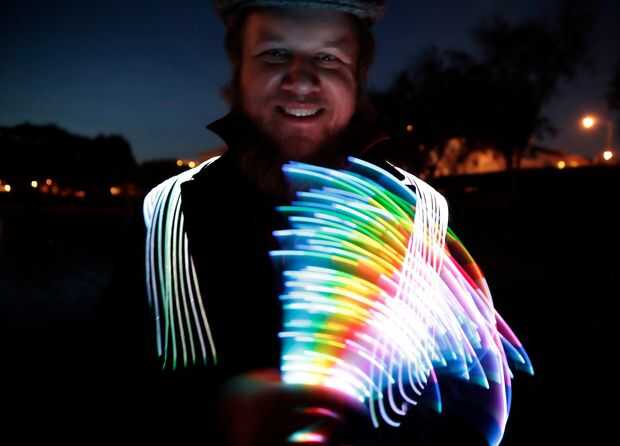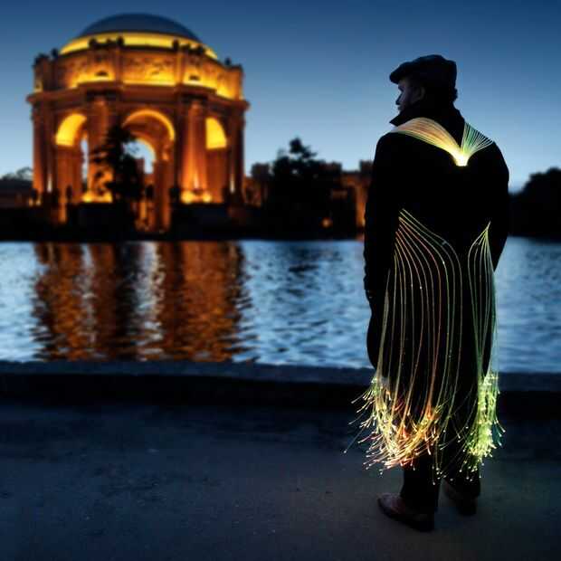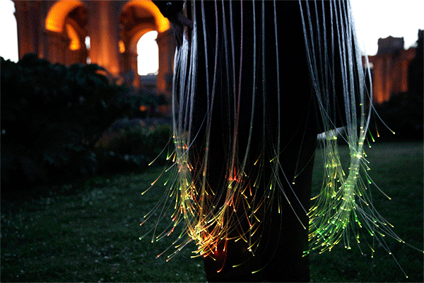 Hace un año hice un vestido de fibra óptica, usando hormigas en fibra óptica de un melón para la iluminación. Debido al éxito del vestido en línea que fue lógico que Joel de hormigas en un melón debe tener una prenda de vestir podía usar demasiado mientras vendía su mercancía! Este es el escudo que hice para él, y la fibra óptica para hacer su propio están disponibles como un kit en su página web. En comparación con hacer una prenda desde cero, este es un proyecto mucho menos desperdiciador de tiempo y accesible para cualquier persona que quiera iluminar algo que ya tienen con fibra óptica.