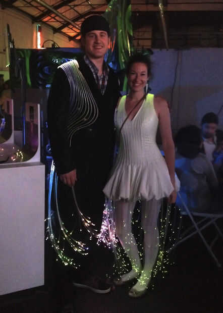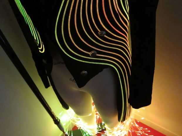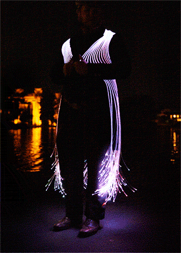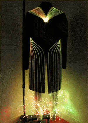 La inspiración para este vestido siguieron la primera vez que vi este producto de fibra óptica en acción. Estaba en una fiesta cuando vi una floración de enfoque de fibra óptica de medusas, y crearon un efecto tan hermoso que yo sabía que tenía que c