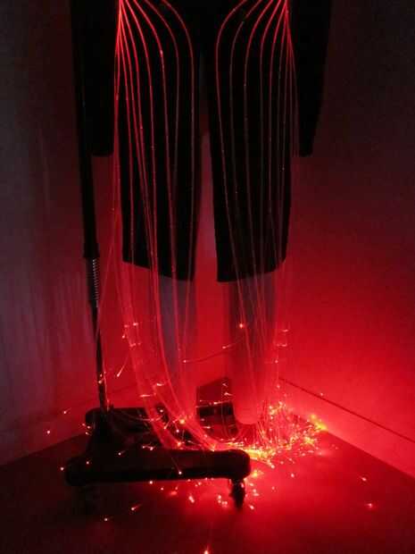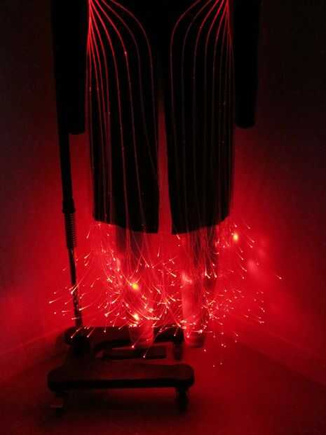 La inspiración para este vestido siguieron la primera vez que vi este producto de fibra óptica en acción. Estaba en una fiesta cuando vi una floración de enfoque de fibra óptica de medusas, y crearon un efecto tan hermoso que yo sabía que tenía que c