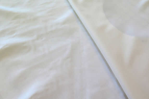 Para hacer la falda, cortar dos capas de tela final y una capa de entretela fusible que os adjunto al interior capa de tela. Colocó en este enfoque después de algún ensayo y error. Sabía que quería la falda para que el cuerpo un poco para proporcionar una buena base para la fibra óptica, pero no pude conseguir la capa con entretela fusible mirar limpio no importa cuánto planchado que hice, como se puede ver en las arrugas en las imágenes terceros y cuarta. Por lo tanto cortar otra capa en la parte exterior de la capa de Unión, que solucionó el tema bien.