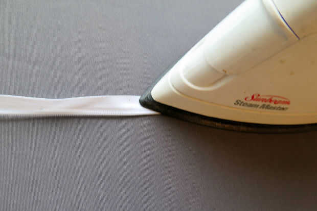 Ya refuerza nuestra costura con cinta de la costura, esto es muy útil para mantener la tela de estiramiento, que puede crear todo tipo de burbujas y arrugas en una cremallera.
