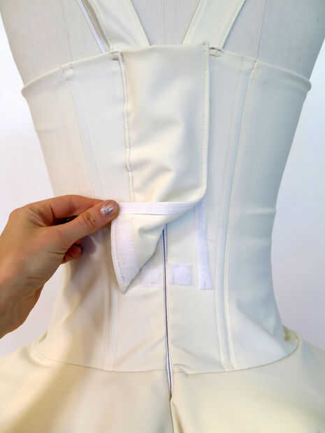 En este punto el vestido sí mismo está hecho y listo para la adición de la fibra óptica. Estaba muy contento con cómo la falda resultó en cuanto a la forma y el ajuste de la blusa resultó demasiado bien.