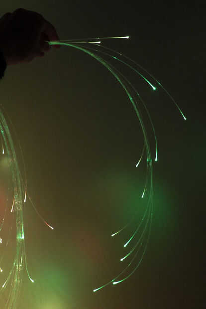 Además de recortar los filamentos, hay un montón de opciones para hacer su brillo de la fibra óptica. Como la luz se escape siempre que haya un corte o nick en el filamento, angustiantes con papel de lija, tijeras, o desgaste simplemente natural crea efectos muy cool. Para este proyecto quería mantener la luz enfocada en la parte inferior, sin embargo dependiendo de la mirada que vas ya que es algo divertido para tener en cuenta!
