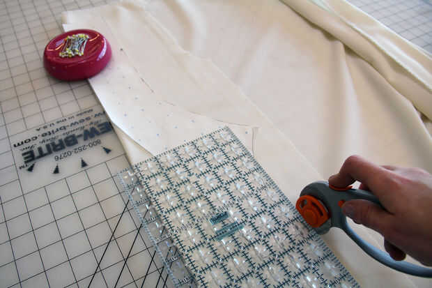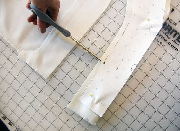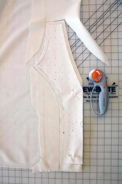 Cortar el patrón. Las piezas delanteras y traseros corte en el doblez y el resto cortar dos capas, una para cada lado de la blusa. Planeé tener dos capas para la blusa, pero empezar yo solo corte una para probar en primer lugar para ajuste.