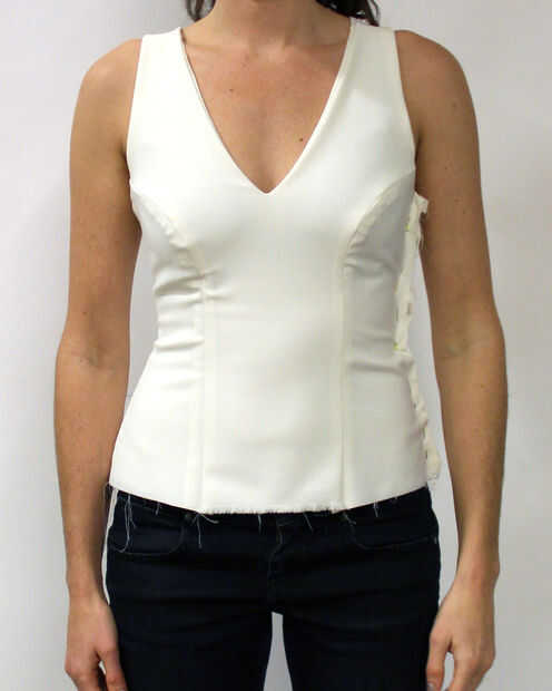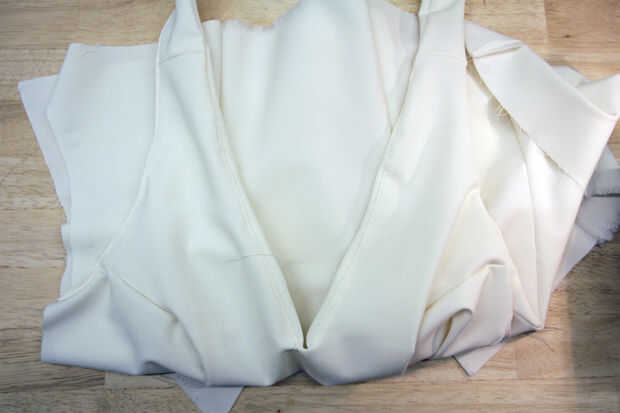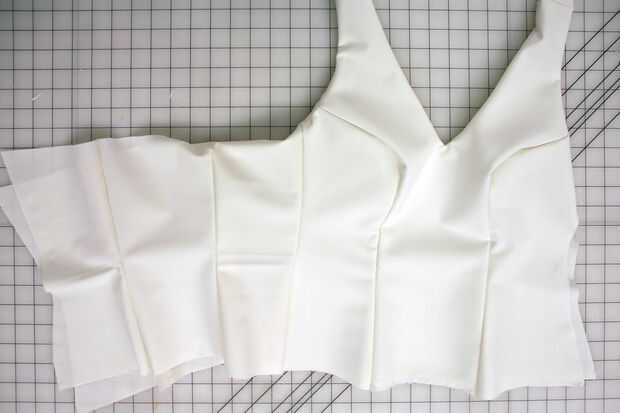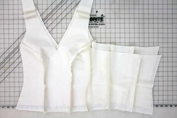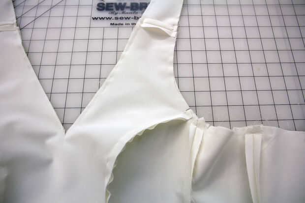 Una vez hecho esto, puso cara de lados juntos y coser la línea entera superior de la prenda (incluyendo las correas), dejando un espacio abierto donde las correas se cose en el centro de la espalda. Después de dar vuelta derecha hacia fuera, luego understitched a lo largo de la línea del cuello para mantener el borde limpio en la parte delantera.