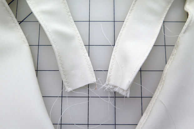 A continuación, topstitched a lo largo de las correas hasta el hombro por un borde plano allí y las correas en la parte posterior de la inserción después de medir la longitud en mi último montaje. Después de coser las correas en la parte superior en el área abierta a la izquierda en la costura superior, reforzado cosiendo una fila o dos a lo largo de la parte superior del lado derecho hacia fuera de la ropa.