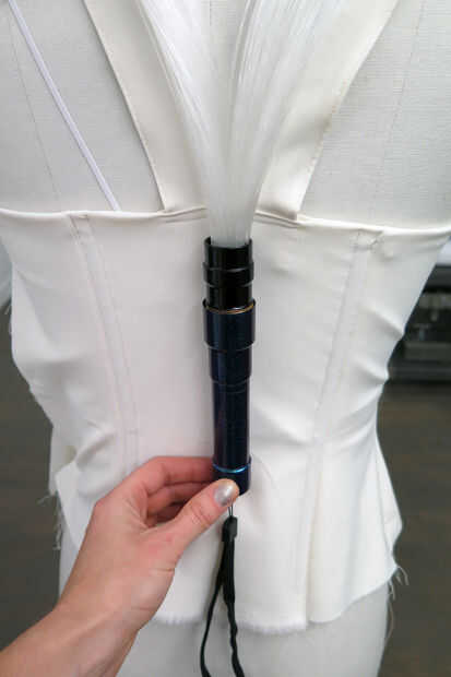También tiene que ser una bolsa para mantener la fuente de luz para fibra óptica (el mango), así que hice un bolsillo para él y había unida a la parte posterior de centro. Medir en primer lugar, como quiera que sea un ajuste ceñido.