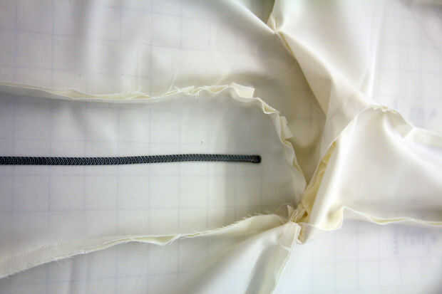 Una vez que las costuras se presionaron bien, cosido canales para los huesos (más aquí) y mide cada hueso a la costura. Desea aproximadamente 1/2" de espacio para el hueso para moverse, para no crear tensión en los extremos del canal.