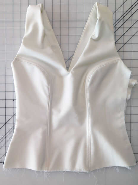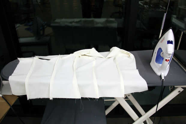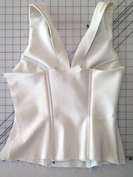 El último paso para la blusa fue añadir deshuesado. Muy importante - fondo clip y presione sus costuras en primer lugar, como quieres que todo a agradable y plana. Como sólo estoy agregando en un hueso por costura vs dos, apreto las costuras en dirección le se poner los huesos, para tener la tela extra en el canal para protegerlo.