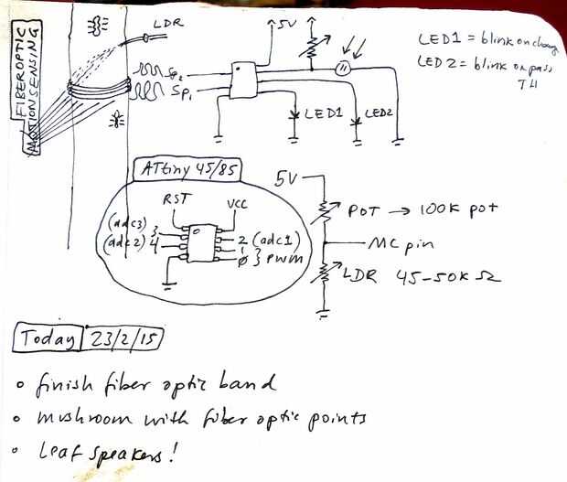 El concepto básico es que estamos haciendo un cable de masa flexible fotosensor. Fibra óptica son piezas de plástico extruido que pueden llevar la luz de un extremo de un tubo flexible y emiten hacia fuera el otro extremo. Realizar la prueba, poner un Led en un lado de un paquete y ver cómo la luz se mueve a través de él!