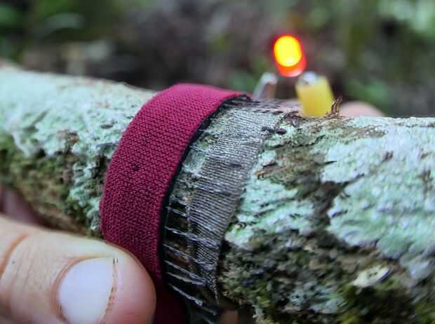 Incluso no necesitas programar nada, solo completar una conexión entre las pestañas y la banda y enganche a un LED o un zumbador piezoeléctrico.