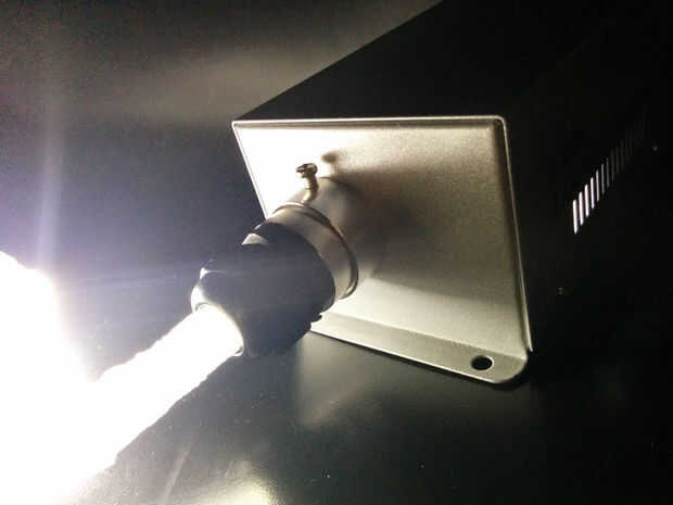 El iluminador modelo LLE-003 TW es grande porque todos los de la fuente de luz se vierte directamente en los cables de fibra óptica. Esencialmente es como un pozo de luz. Así no hay ninguna 'basura ligera' reflejada en cualquier superficie...