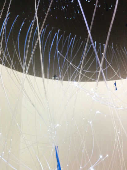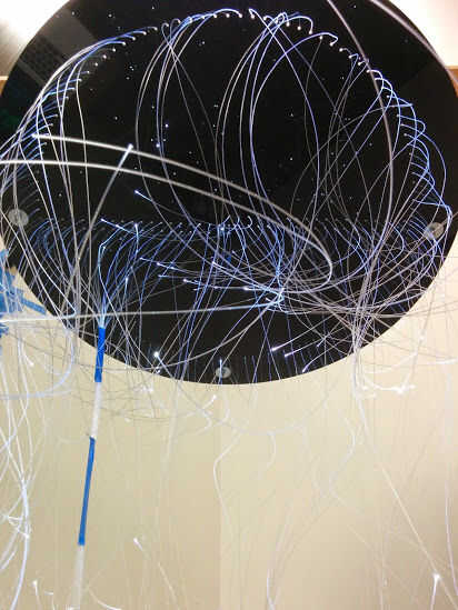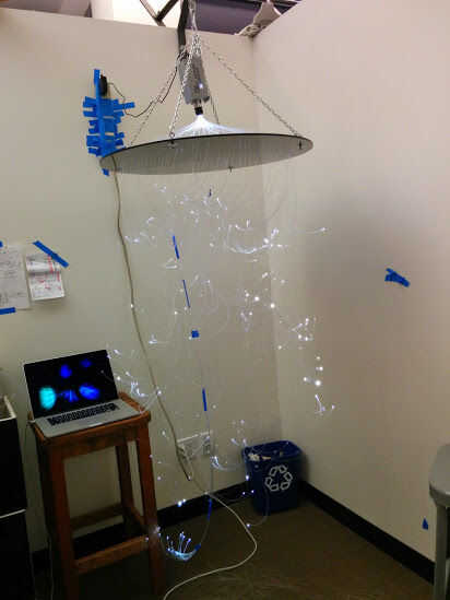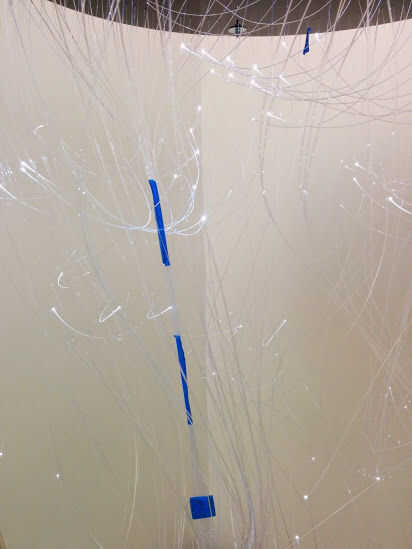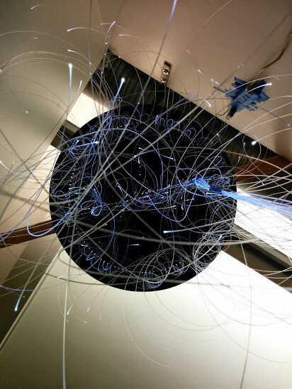 Hacer que todo alrededor de la pieza. Mi consejo para mantener todo el 'pelo' más o menos organizado es para envolver las distintas áreas en la cinta de pintor. Me ha gustado hacer este paso mucho, es muy meditativo. En el siguiente paso vamos a añadir las esferas a la araña por pegar a los filamentos ópticos de fibra.