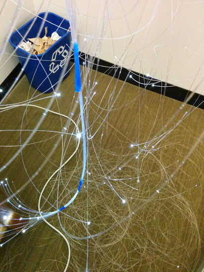 Es el corte de los cables de fibra óptica. Al igual que nos dicen antes, hay que cinco diferentes piezas que constituyen el diseño. Necesitas unas tijeras y una regla pequeña.