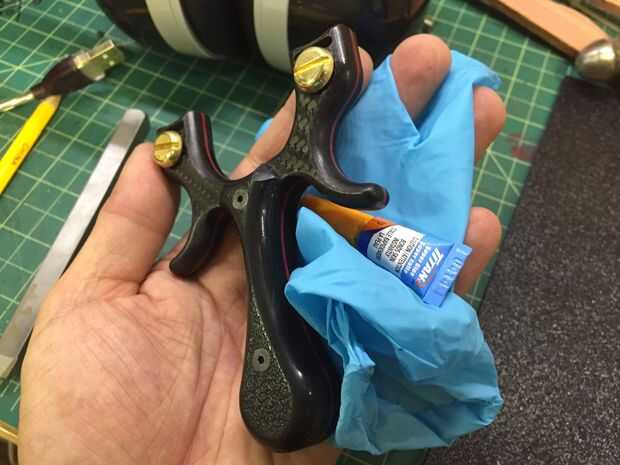 El 'grano final' de la CF está ahora expuesta y para que sea un poco más estable, sellé el borde con pegamento CA barato, fino estupendo. Este es el truco de un fabricante la pluma. Estar en un área bien ventilada use nitrilo guantes. Basta con poner una gota de pegamento en el borde de la Honda y frotarla con un solo dedo hasta que se seque. Esto debe ser sólo segundos.